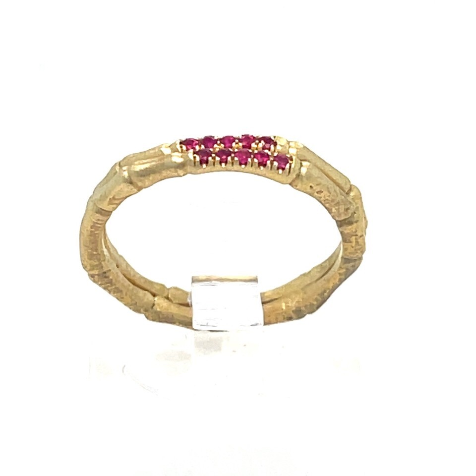 Sterling 18k Yellow Vermeil Bamboo 2 mm Ring w/ Red Spinel Accents Sz 5.75