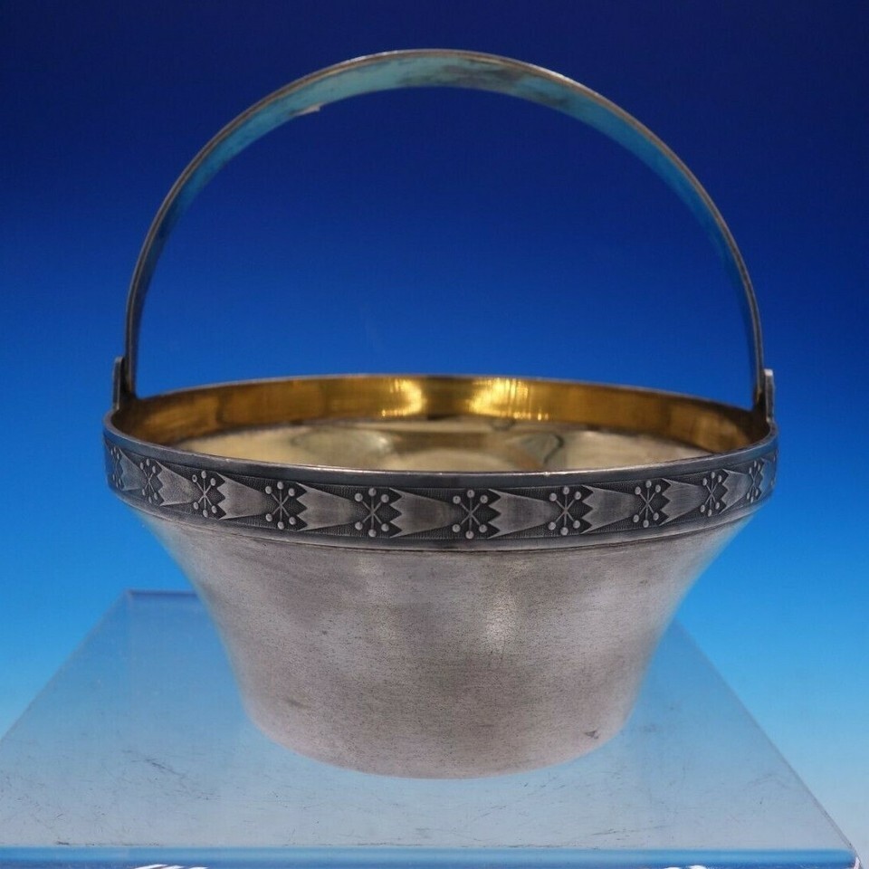 Russian 916 Silver Sugar Basket with Gold Wash Interior and Swing Handle (#4229)