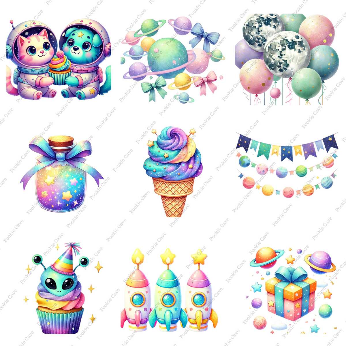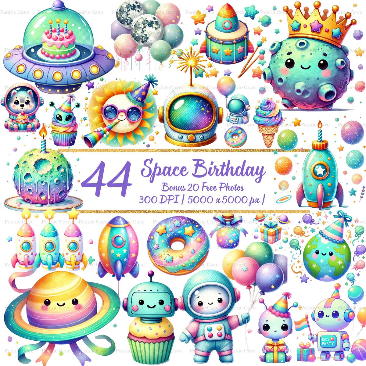 Space Birthday Clipart Bundle – 44 PNG and 50 similar items