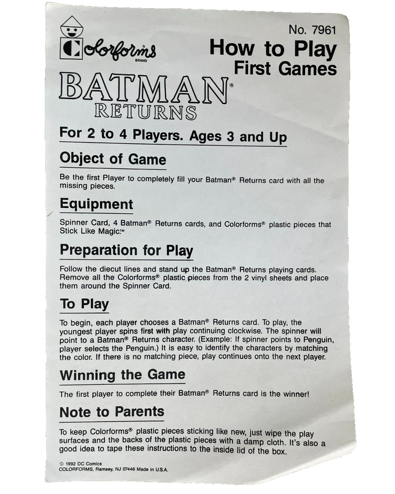 Batman Returns First Games Adventure Play Set Open Colorforms 1992 Collectible