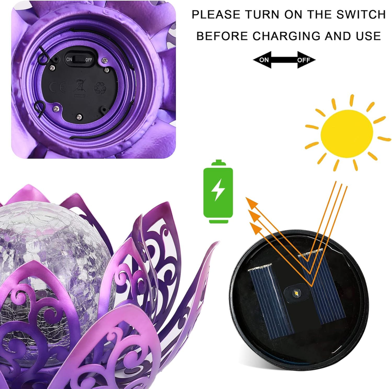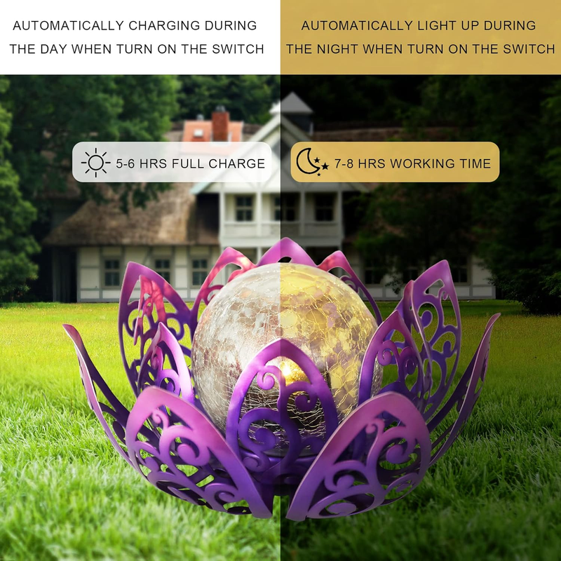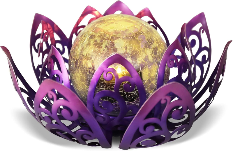 Solar Lights Outdoor, Lotus Lamp Garden Decor Metal Crackle Glass Solar Lantern