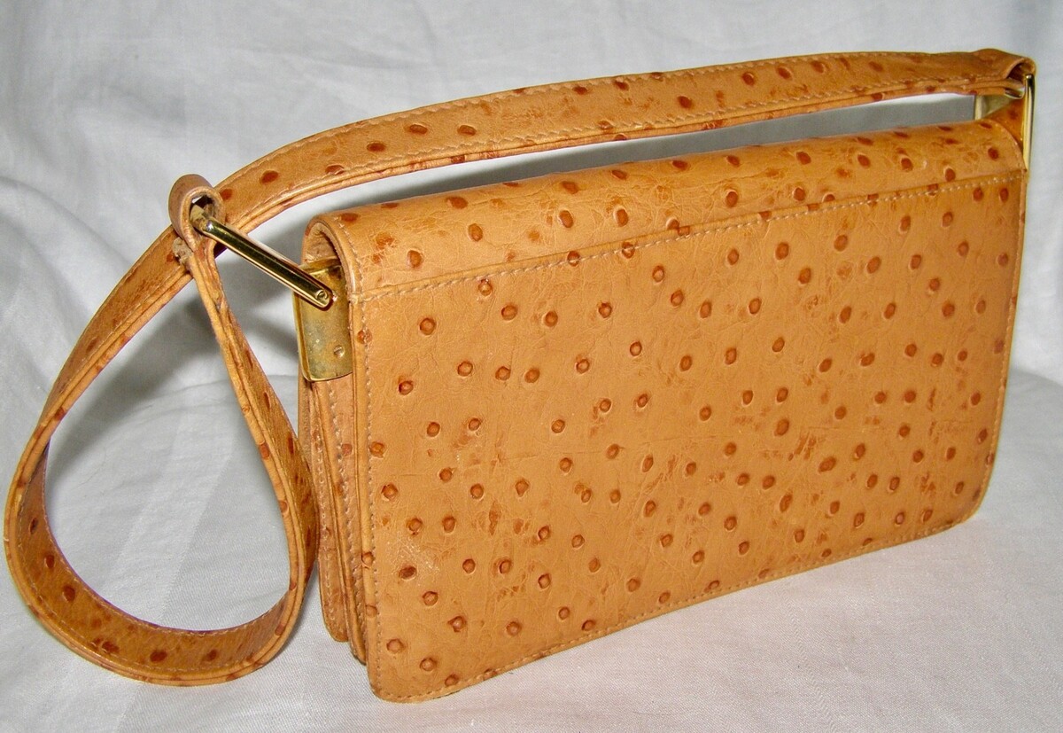 VINTAGE “HIGH FASHION, CANADA” UNDER-THE-ARM EMBOSSED OSTRICH LEATHER HANDBAG