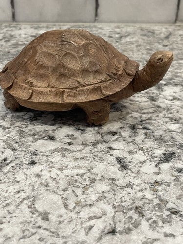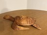 Polyresin, faux carved wood-look, featuring single large sea turtle. Measures 10-1/4" long x 8" wide x 5-1/2" tall.