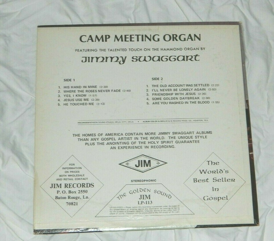 Jimmy Swaggart Camp Meeting Organ LP 113 and 50 similar items