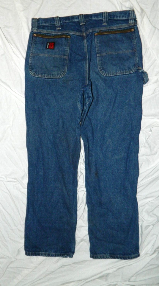 is Men's WRANGLER Riggs Work Wear Denim Jeans size 36x32. Has 3 Front and 2