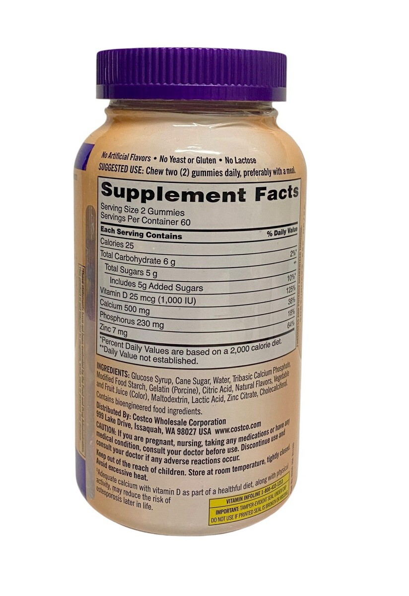 Kirkland Signature Calcium 500 Mg w Vitamin D3 Zinc Adult Gummies 120 Exp 8/26