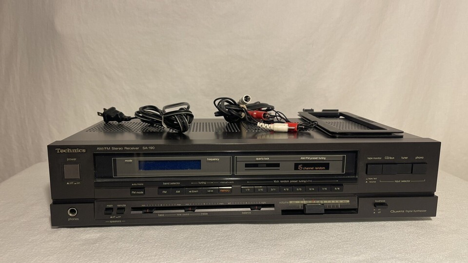 Vintage Technics SA-190 Quartz Synthesizer AM/FM Stereo Receiver is a classic piece of audio equipment from the brand Technics. Known for its high-quality sound output, this vintage receiver features a quartz synthesizer for precise tuning of both AM and FM radio stations. Perfect for audiophiles and collectors of vintage electronics, the Technics SA-190 offers a nostalgic listening experience with its retro design and functionality.
