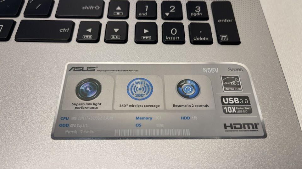 ASUS N56V, i7-3630QM @2.4GHz, 6GB RAM, GT 635M
