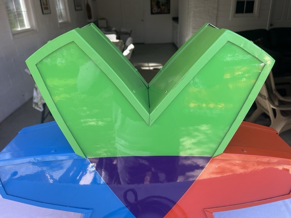 The product is a rare FedEx electric emblem sign, likely used for advertising purposes. This collectible item would be a unique and nostalgic piece of merchandise and memorabilia for fans of FedEx or collectors of advertising signs. The electric emblem sign would likely be a distinctive addition to any collection, especially for those interested in vintage advertising memorabilia.