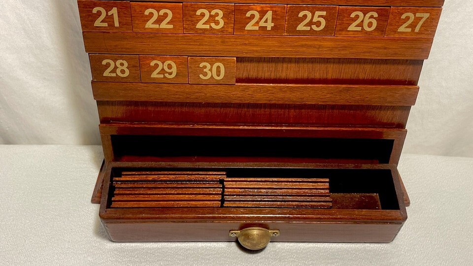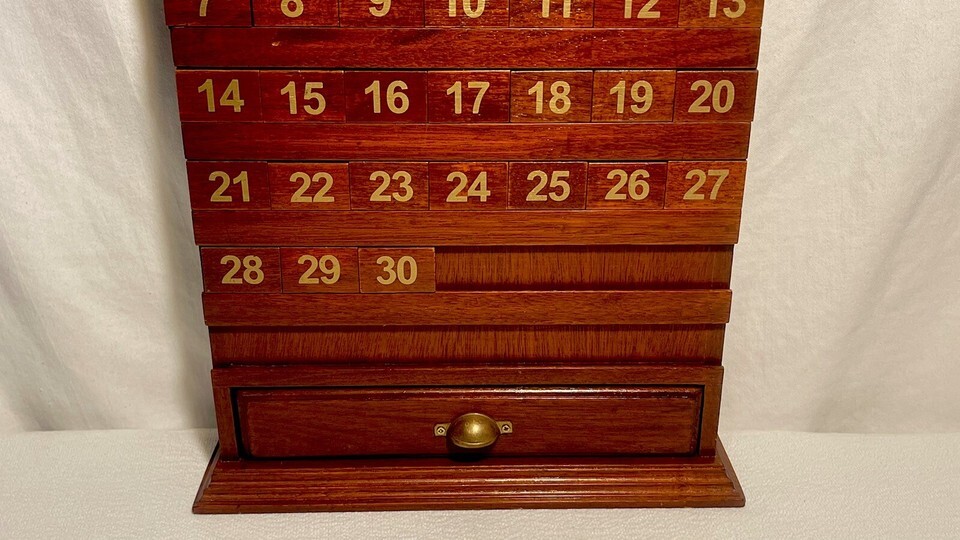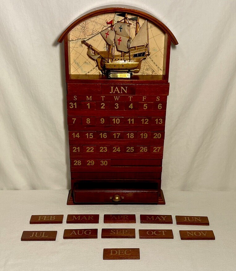 Complete Vintage Wood Perpetual Calendar Wall Hanging W/Santa Maria Model Ship
