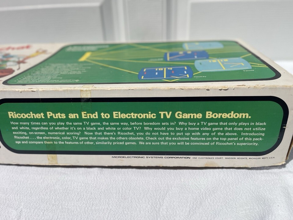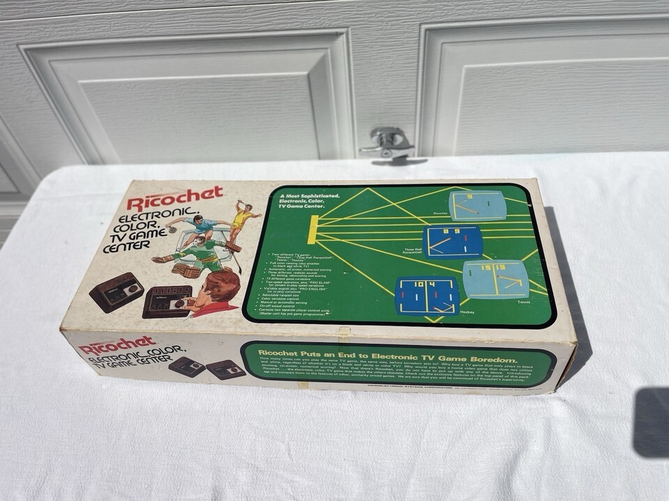 Vintage Ricochet Electronic Color TV Game Center Pong Video Game Console Works. Condition is Very Good. Shipped with FedEx Ground or FedEx Home Delivery.