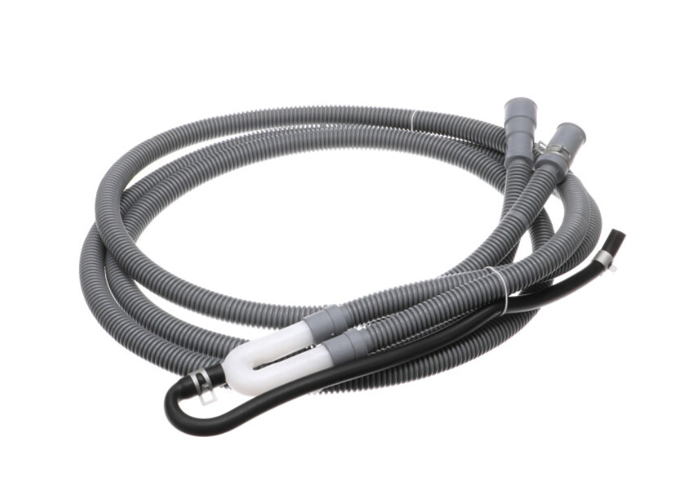 The LG AEM69493808 Drain Hose Assembly is a genuine OEM replacement part designed to efficiently channel wastewater from your LG dishwasher to the household drain. Crafted from durable, flexible materials, this drain hose ensures a secure, leak-free fit and reliable long-term performance. It helps maintain proper water flow and drainage, ensuring your dishwasher operates smoothly and efficiently. Perfect for replacing a worn or damaged hose, this assembly restores full functionality and prevents potential leaks or blockages.