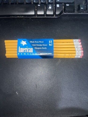 Vintage 1998 Sanford American Pencils No.2 Anti Smudge Eraser Made USA 12 Pack