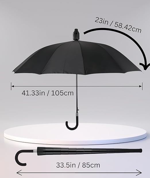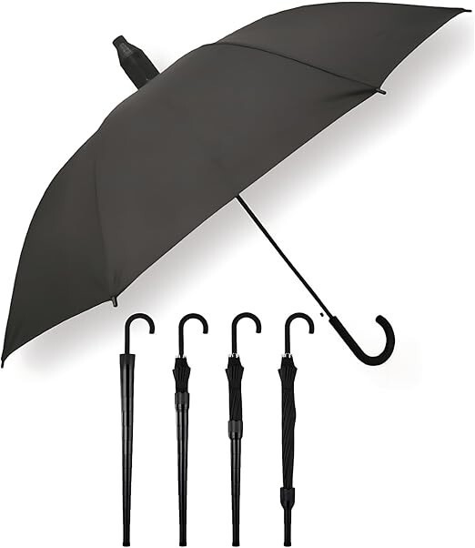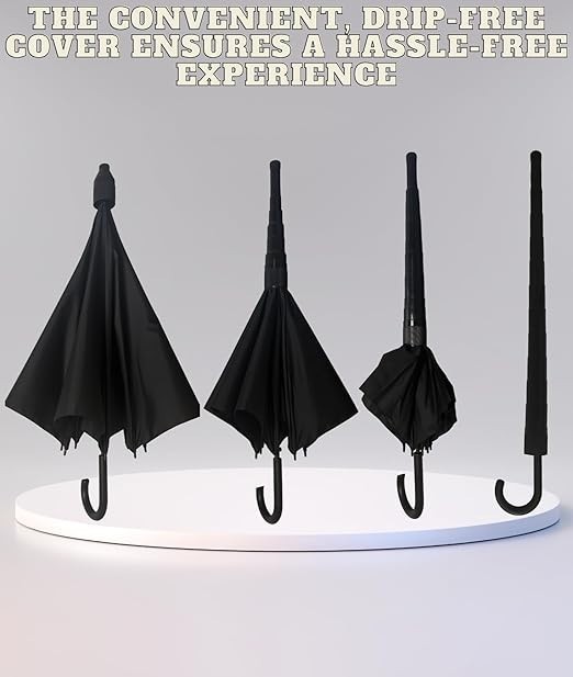 Non-drip lightweight umbrella with Cover, plastic Telescopic cover, Windproof canopy heavy duty, Rainproof, J Stick Handle with Easy Grip, Durable for travel, Black, suitable for Women, Men, kids.
