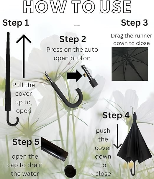 The umbrella's automatic open switch and simple cover mechanism make it accessible to all ages.