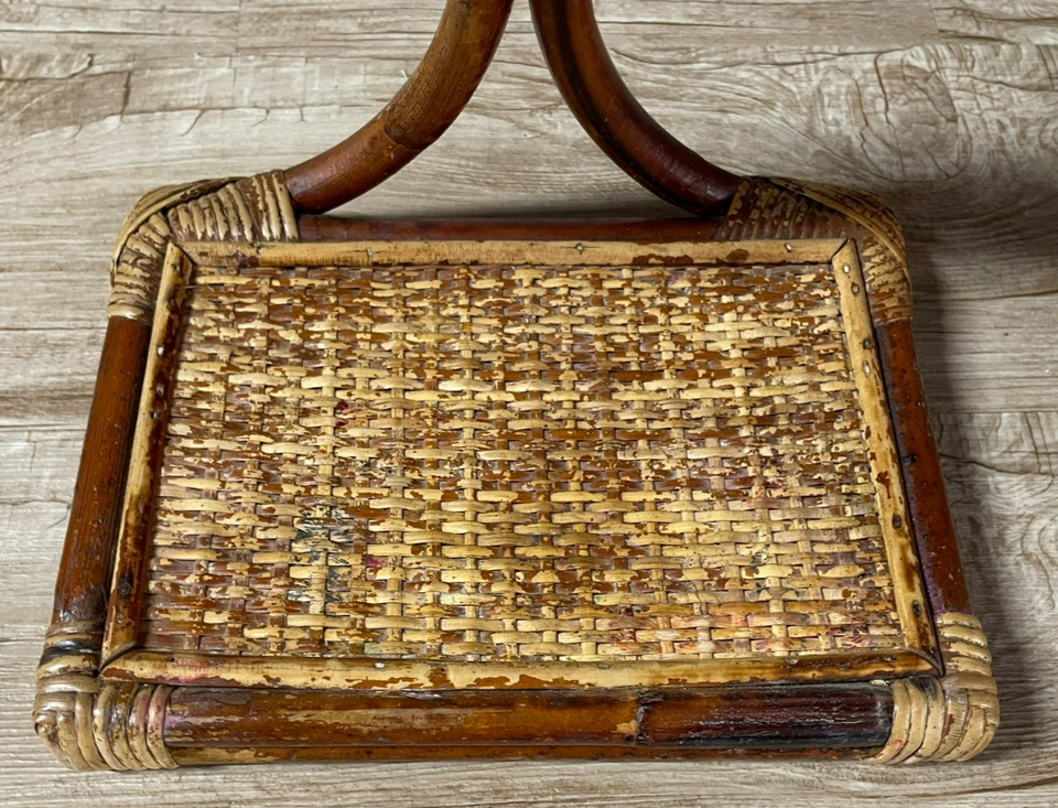 Vintage Rattan and Bamboo Table Mirror, Adjustable Decorative Mirror