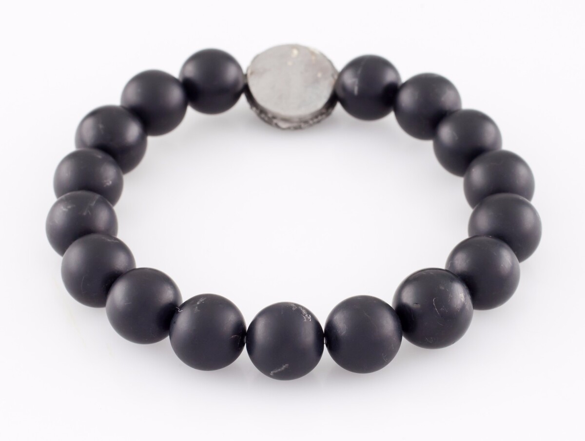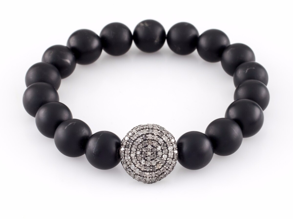 Onyx Beaded Stretch Bracelet w/ Pave Diamond and similar items