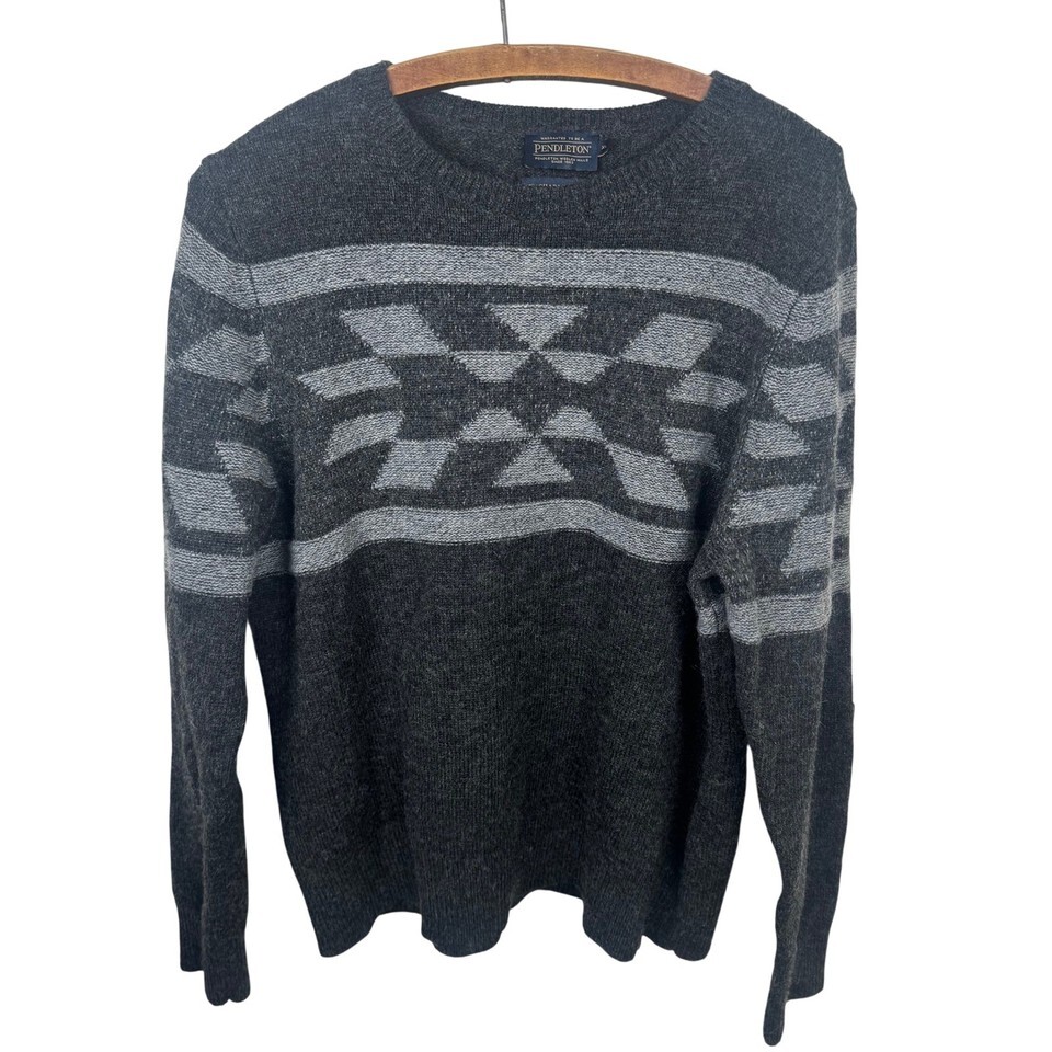 Pendleton Men's Washable Wool Sweater XL Geometric Pattern Gray Pullover