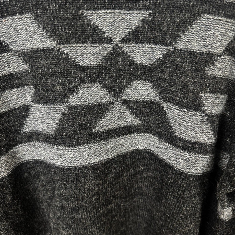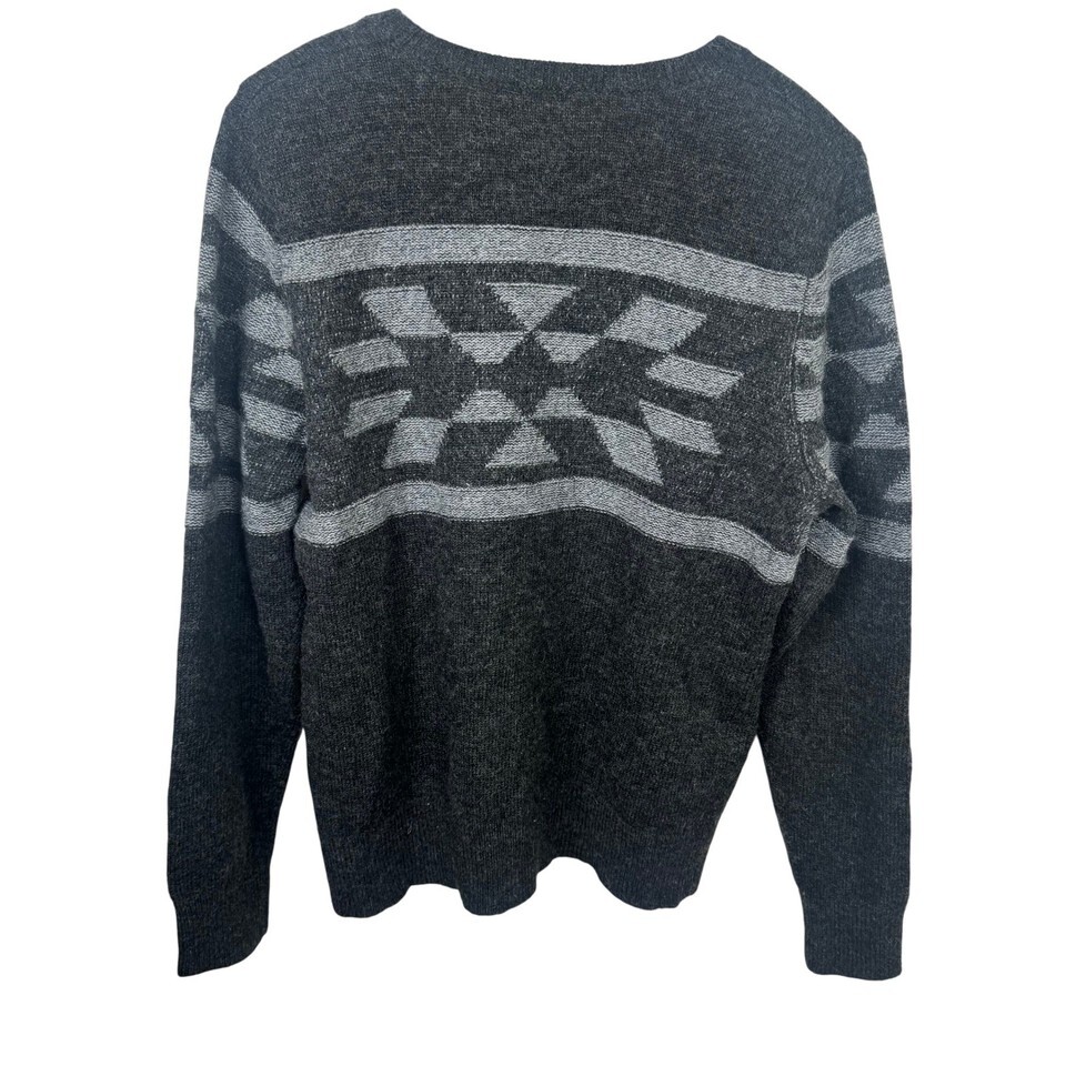 Pendleton washable wool sweater, designed for ultimate comfort and enduring style. Its intricate geometric pattern, rendered in sophisticated shades of gray, evokes a sense of timeless Americana, adding a touch of rustic charm to your wardrobe. Soft, breathable, washable wool. Pit 2 Pit 22in., Length 25in., Sleeve 26in.