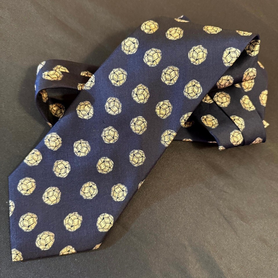 Jim Thompson 100% Thai Silk Tie – Navy Geom Wicker Ball Pattern – Luxury Necktie