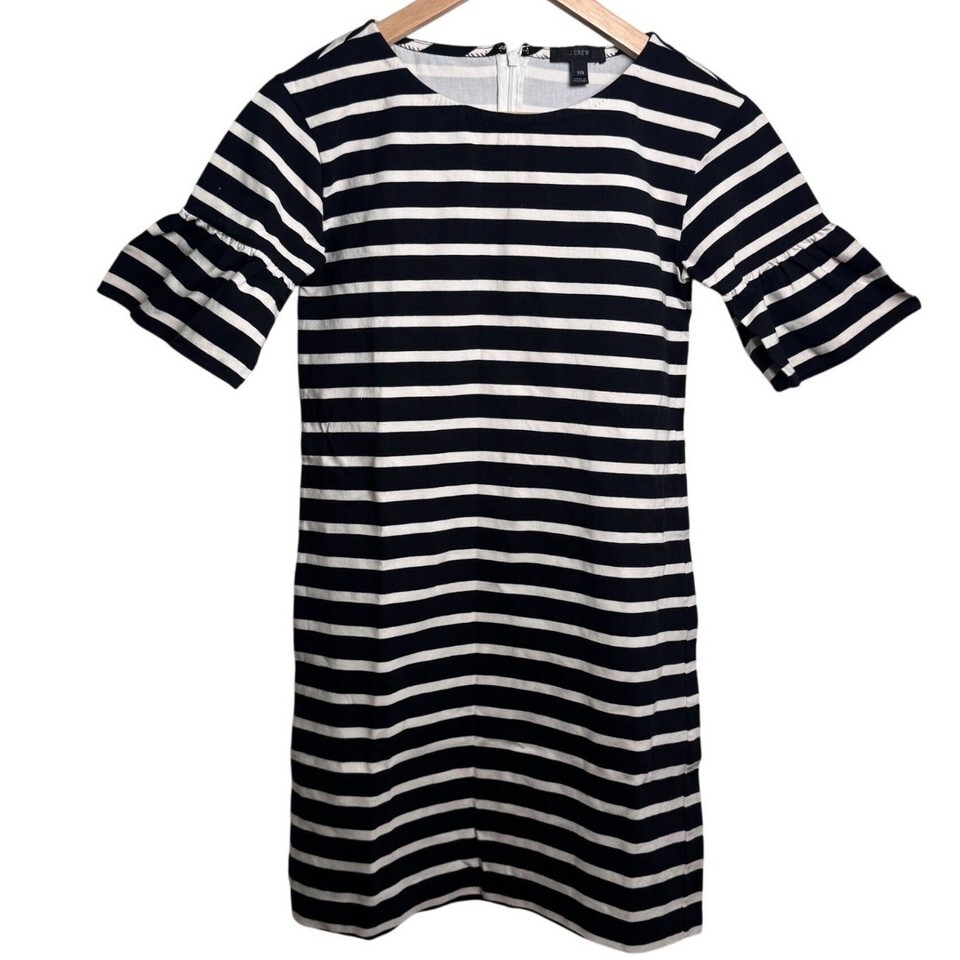 JCrew Ruffled Bell Sleeve Shift Dress, Black & White, Women's Size XXS