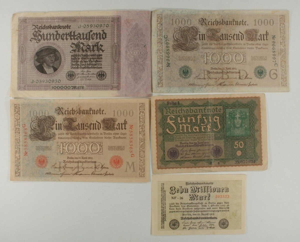 1910-1923 Germania 5-Note Currency Set Della Repubblica Tedesco Impero