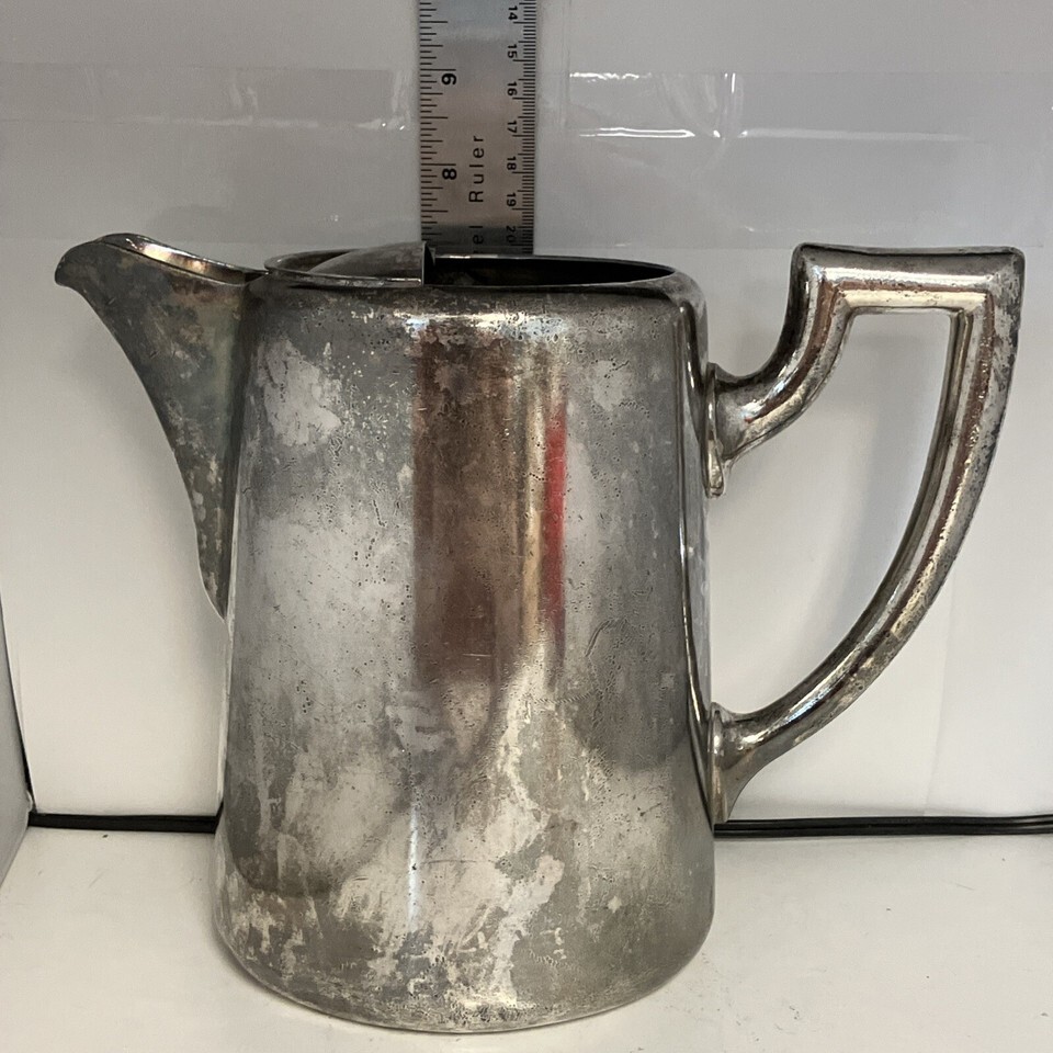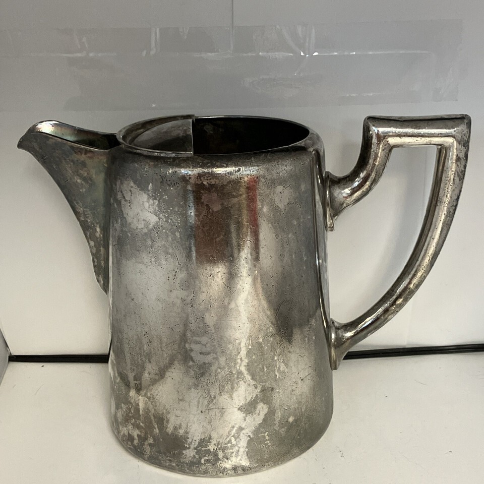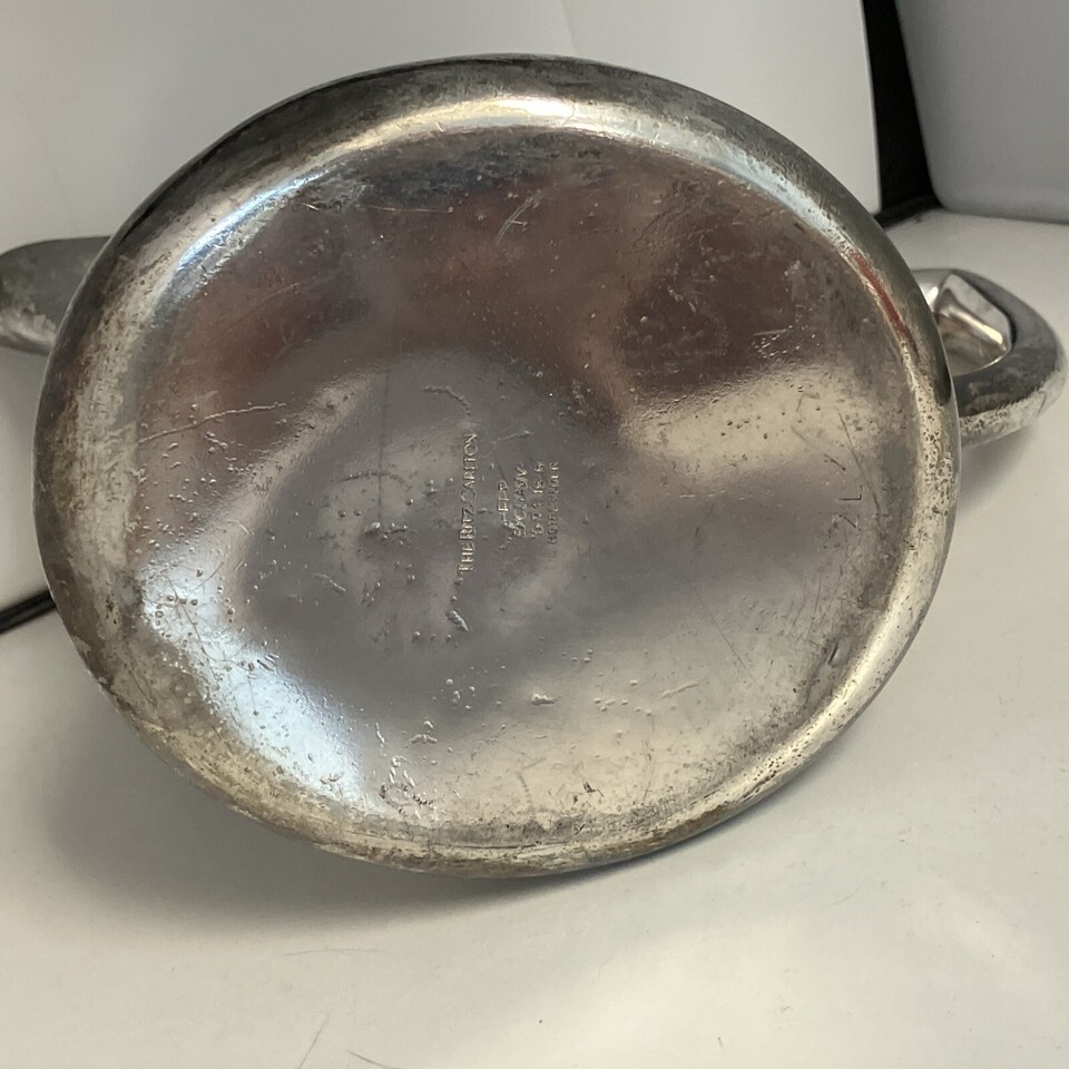 This is a vintage silver-plated water pitcher made by Gebruder Hepp exclusively for the Ritz Carlton hotel. The pitcher is marked with the model number G 71 and the material used is 18-8 silverplate.