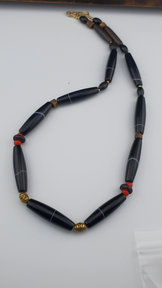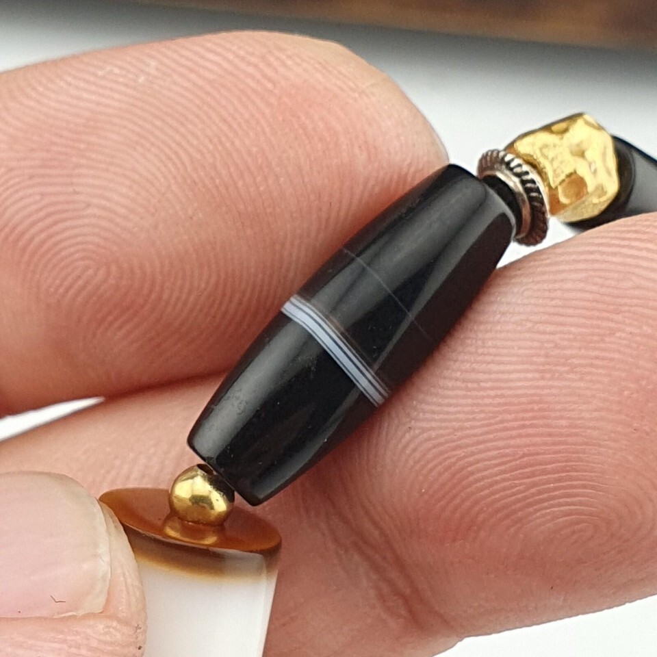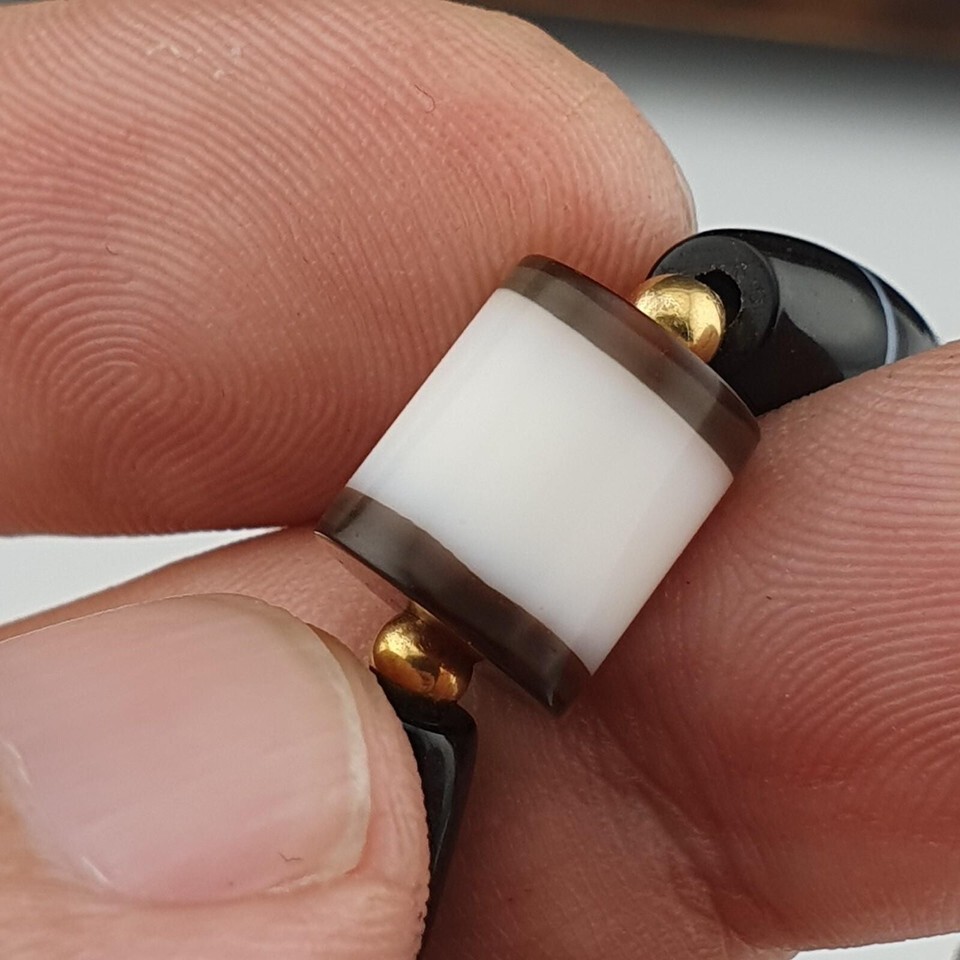Ancien bracelet ancien perles porte noire 1 ligne agate yéménite blanche natu...