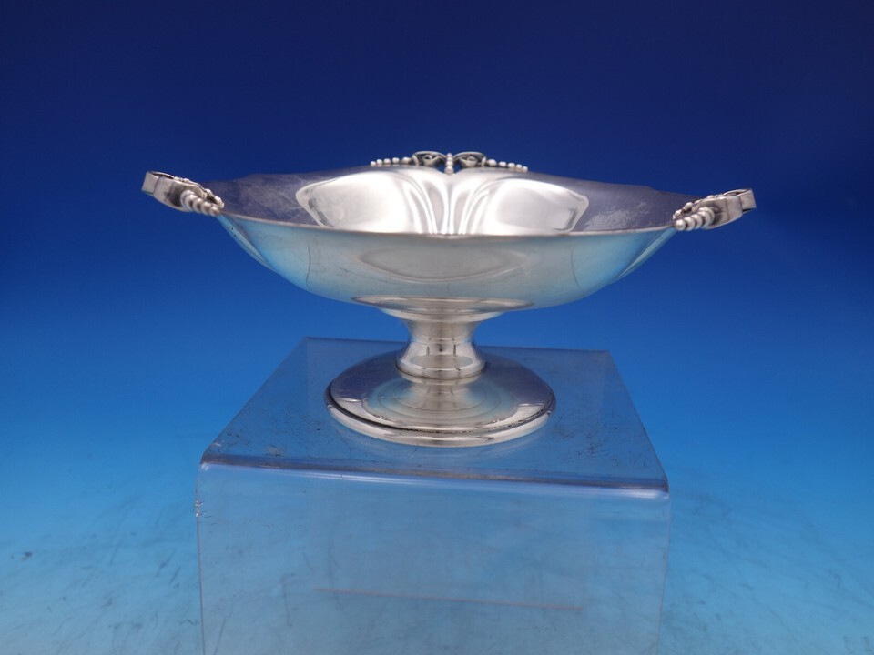 International sterling silver raised compote with unique applied beads and wire work design, marked #14440.