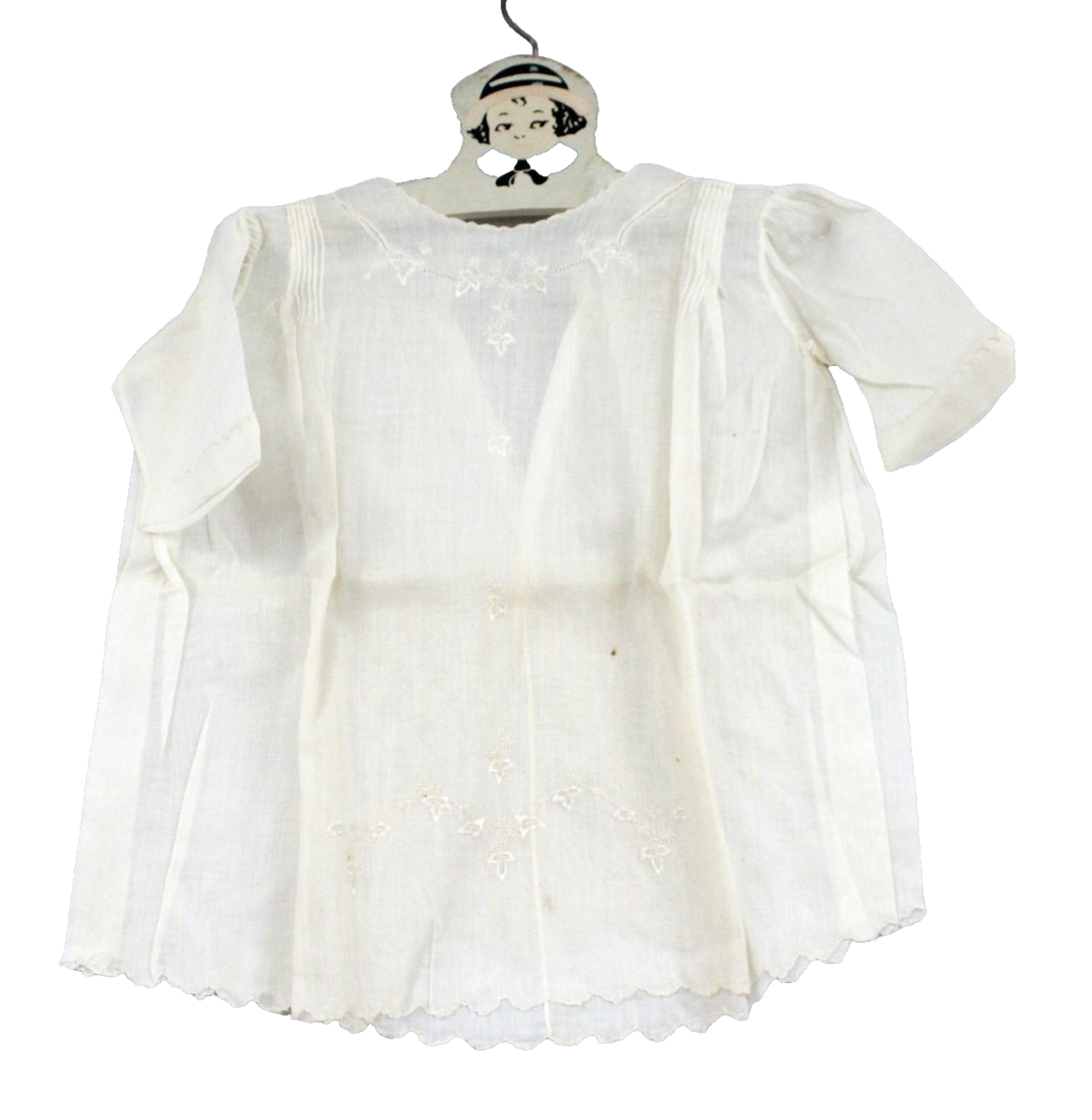 VTG 50s Baby Dress Ivory Cotton Lawn Embroidered Infant Doll Sz 12mo 26 Chest