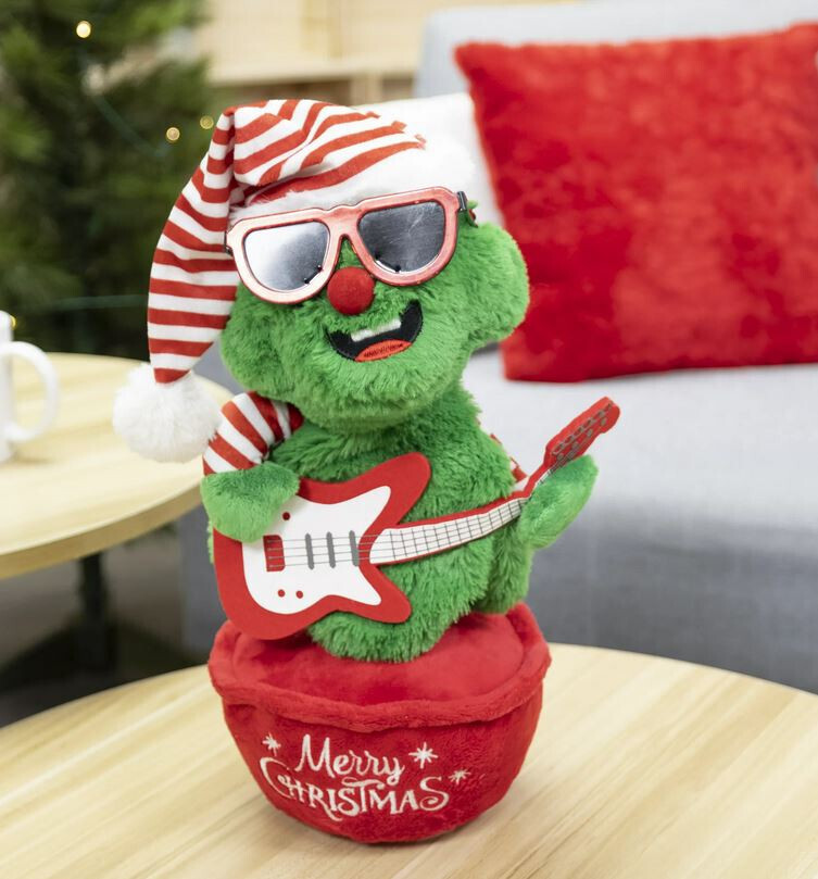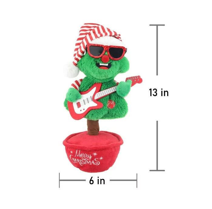 Holiday Time 13 inch Animated Christmas Tree with guitar Plush Toy, Green