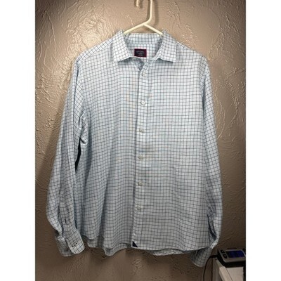 UNTUCKit Linen Check Plaid Long Sleeve Button Up Shirt Blue Mens Size Large