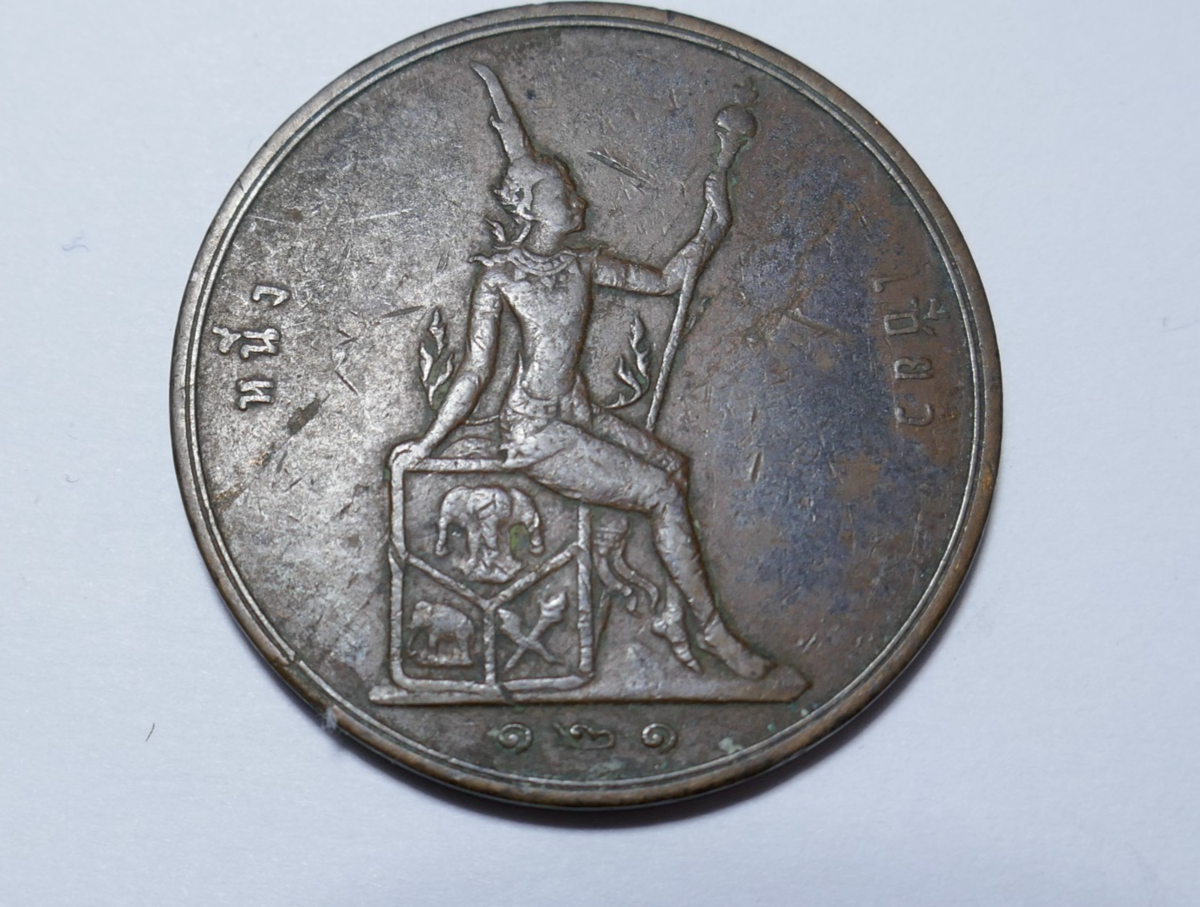 The Thailand 1902 Rama V 1 Siao / 2 Att Bronze Coin is a historical piece of currency originating from Thailand. With a denomination of 1 Siao and composed of bronze, this coin bears the portrait of King Rama V. The year of 1902 holds significance in Thai history, and this coin serves as a collectible item for numismatists and history enthusiasts interested in the artifacts of the Rama V era.