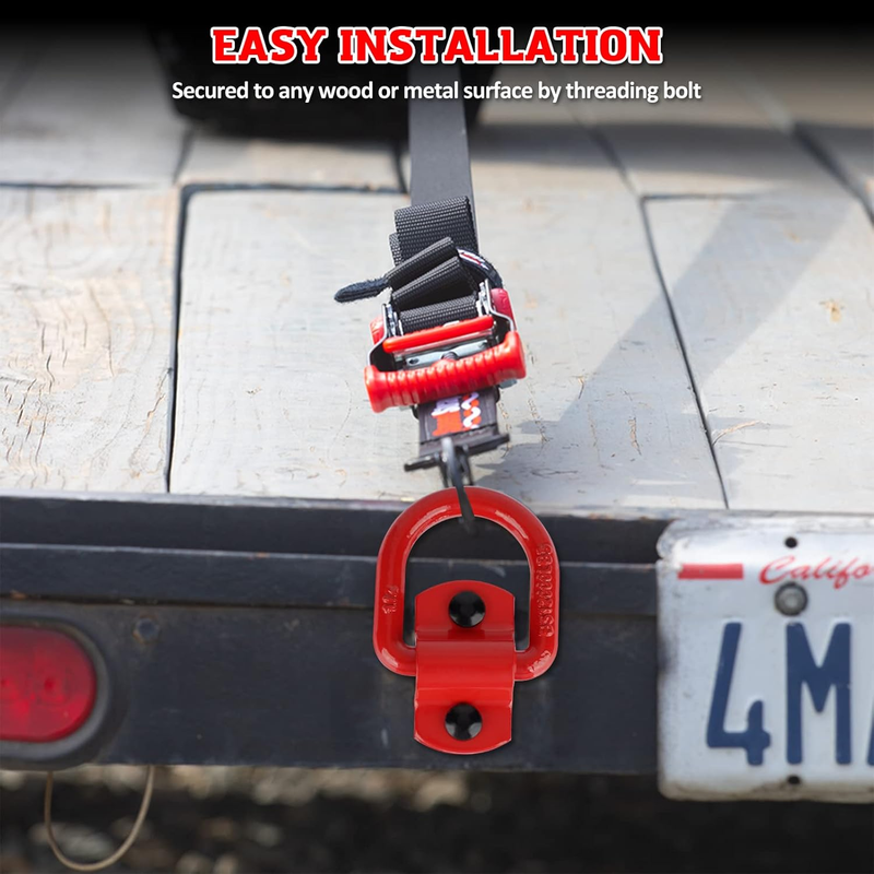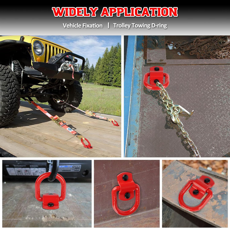1/2" Heavy Duty Bolt-On Forged D Ring, 12000Lbs Break Strength Tie down Anchors Hooks, for Trailers, Trucks, and Cargo Tie Downs (Pack of 4) Red
