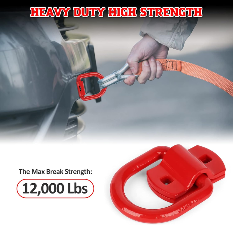 HEAVY-DUTY- 12000 lbs Strength. The D ring tie down anchor are made of heavy-duty steel for safety and durability. This trailer tie down ring is ideal for heavy duty applications acting as the foundation in tie down technique while moving cargo in your truck or trailer. The d rings heavy duty has a remarkable working load limit allowing it to accommodate tractors and other heavy freight.