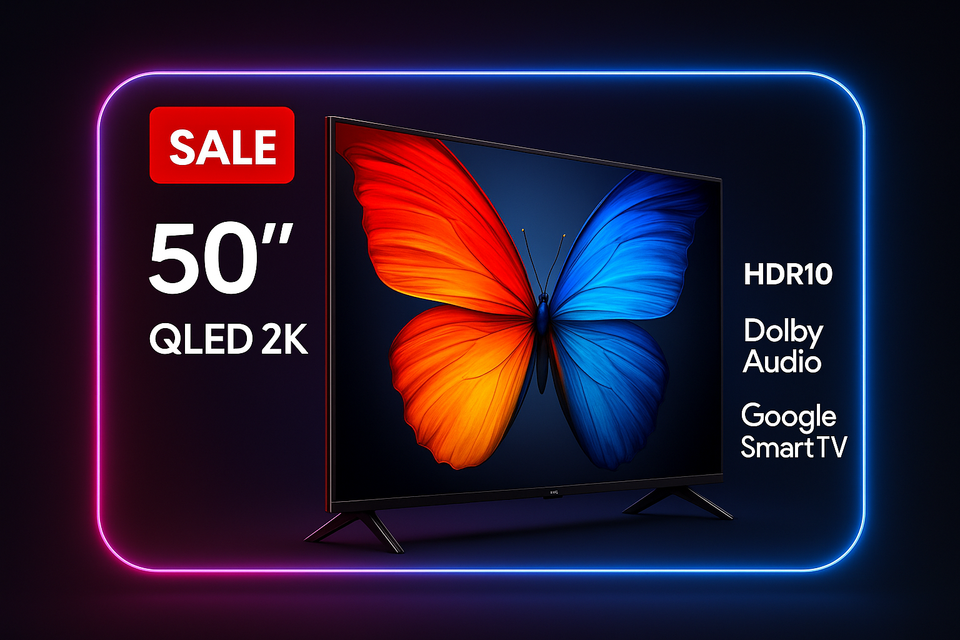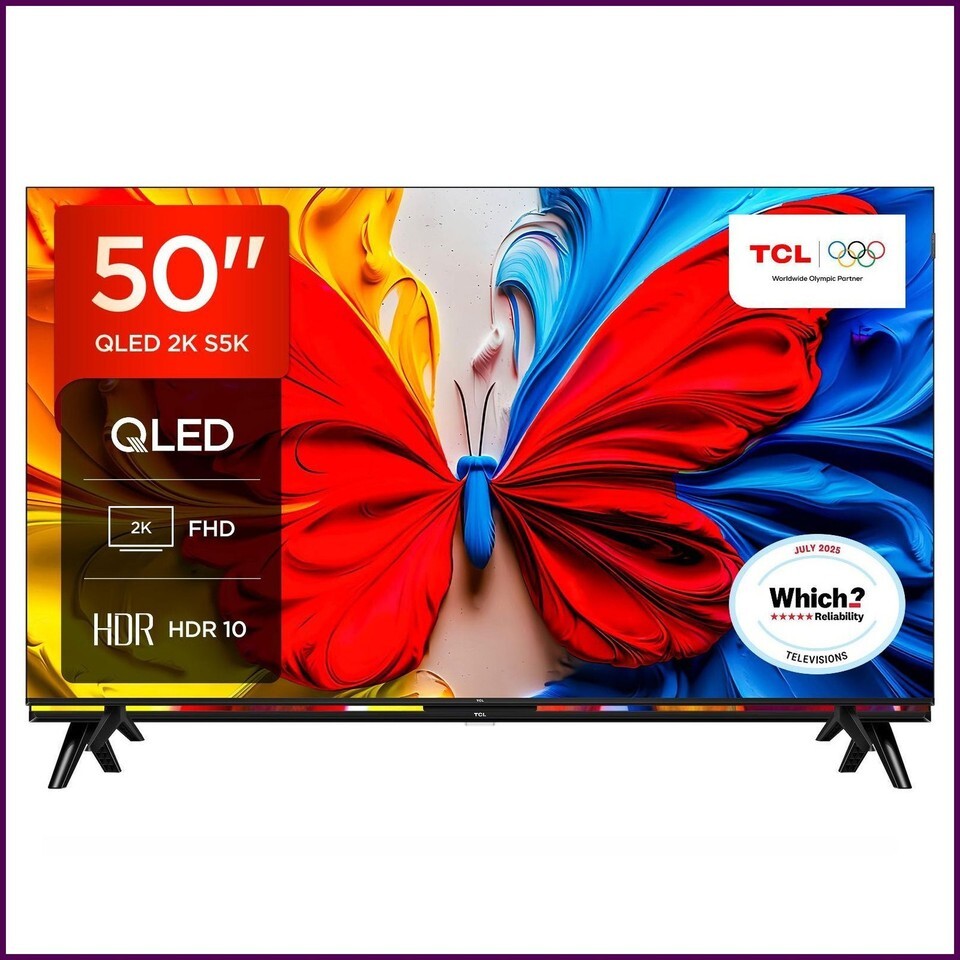 TCL 50” QLED Smart TV 2K FHD HDR10 Google TV – Dolby Audio, HDMI, USB – 50V5C-UK