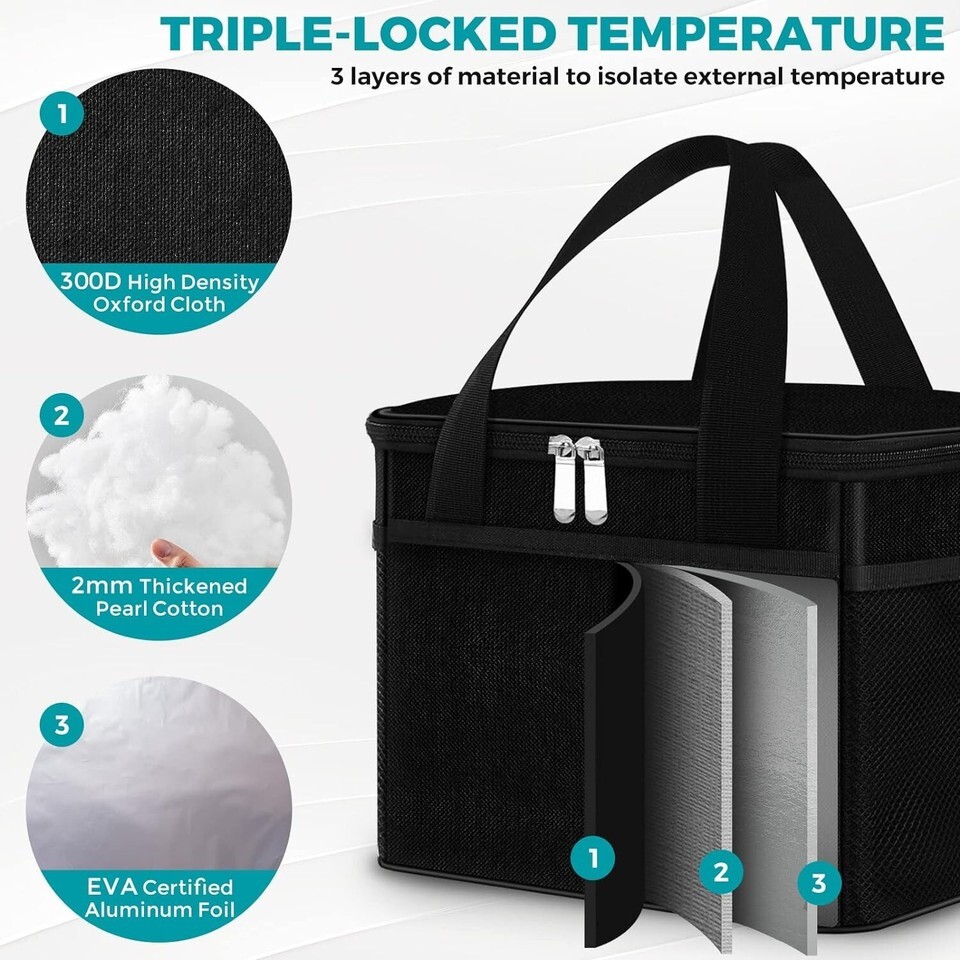 ??Thermal Insulated Lunch Bag?Extra thick waterproof EVA liner, premium 300D eco-friendly oxford fabric and built-in 2mm EPE foam insulation material retain coldness or warmth, it can keep food stay cold/hot/fresh more than 3-6 hours. The insulated lunch bag can provide excellent cold insulation and heat preservation up to 8 hours with the assistance of ice packs or insulation lunch box. Perfect for carrying food for work or long periods of outdoor activities. br/