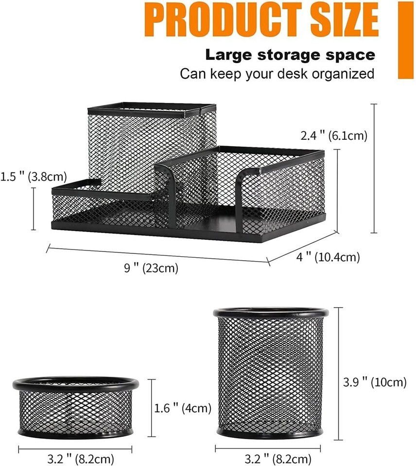 ?This desk organizer set comes with 1pc pen holder with 3 compartments, 1pc Metal pen cup and 1pc Paper Clip holder.