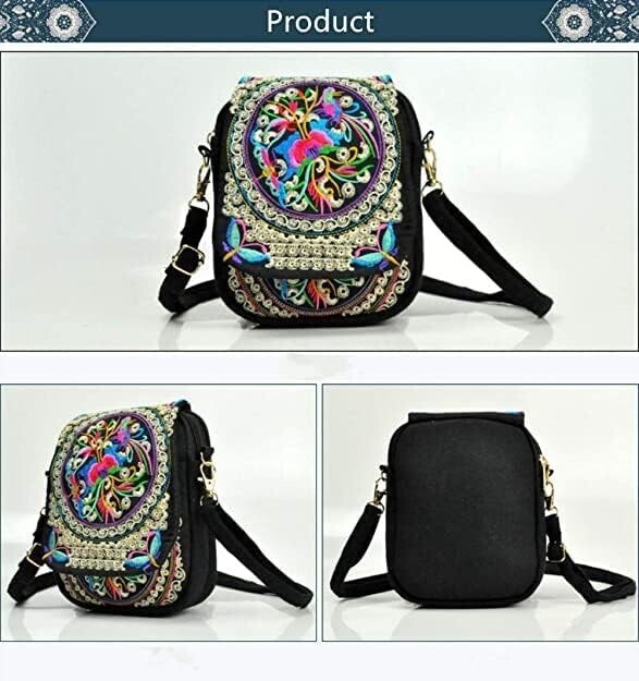 Cute, unique, retro style and handmade flower embroidery. 3 ways to wear: cross body shoulder bag, single shoulder bag and handbag. Moderate Size: The size of this bag is just perfect to use for walking around festivals or going shopping when you don't want to carry a huge bag.
