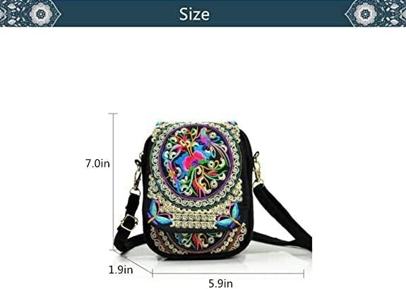 Embroidered Crossbody Bag Boho Ethnic Shoulder Bag Vintage 5.9 x 1.9 x 7 in