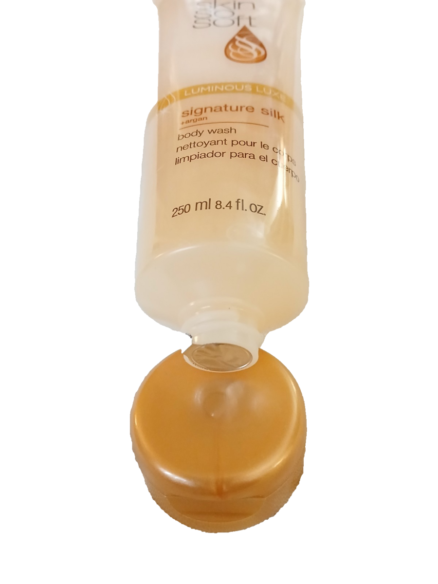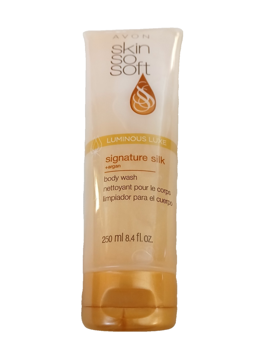 The AVON Skin So Soft Luminous Luxe Signature Silk + Argan Body Wash is a creamy, moisturizing body wash enriched with Argan Oil and Vitamin E that leaves skin feeling silky smooth, nourished, and radiant, known for luxurious hydration and gentle cleansing.