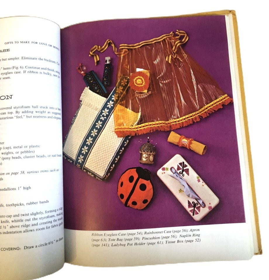 Betty Crocker Gifts To make for Love or Money Hardcover Book dated 1973. The book is a hardcover book and has 184 pages. The book may have a little wear overall it is in good clean, vintage condition. I do have other craft books at my shop and have calculated shipping set up for multiple purchases.