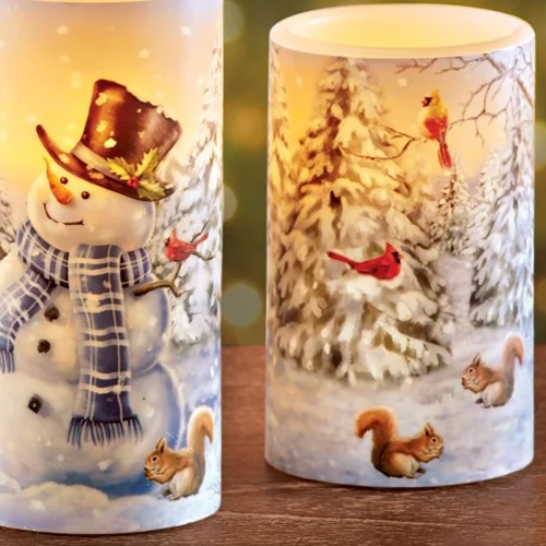 This set of 3 LED candles features a smiling snowman with red cardinals in a wonderful woodland setting. A beautiful way to add style to your home, the battery-operated candles have realistic flickering light without any open flames. These look beautiful in our Candle Holders sold in our store! Plus the more you buy, the more you SAVE!