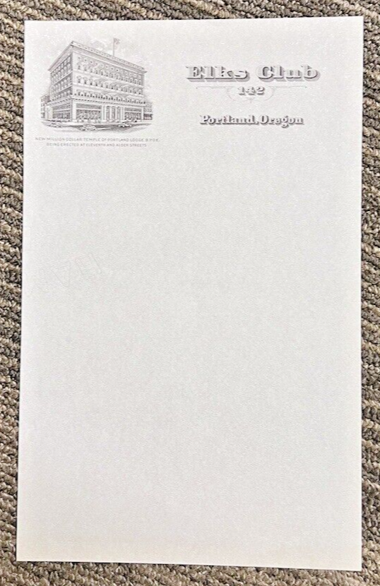 Vintage Elks Club 142 Portland Oregon Stationery 1 Sheet New Million Dollar Temp