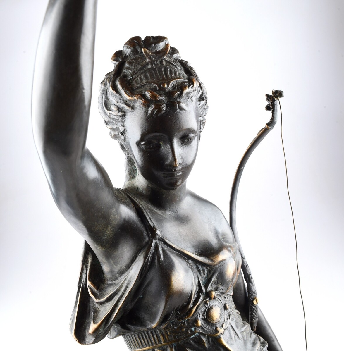 *Beautiful Ansonia Cut 8 Day Movement Brass Huntress Lady Mystery Swinging Clock