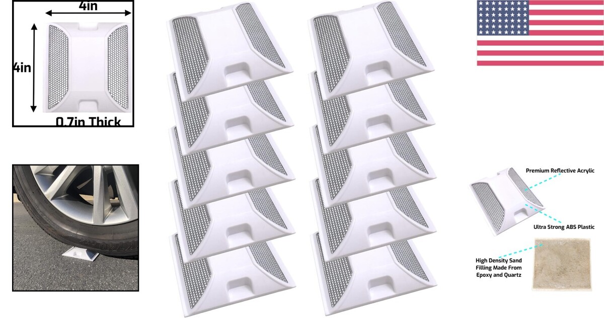 Durable 4x4 Inch Road Reflectors, Pack of 10 - Ideal for Speed Bumps Sidewalks