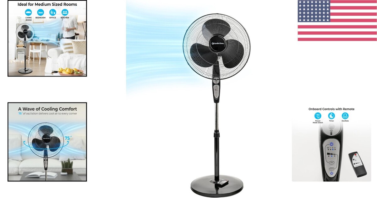 3-Speed Adjustable Oscillating Fan with Remote – Perfect for Home & Office Use