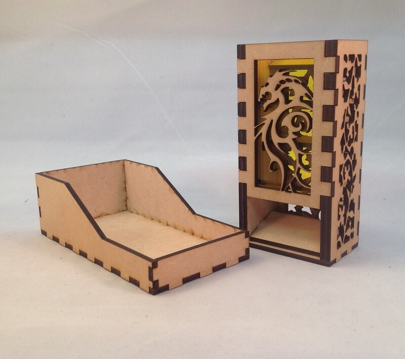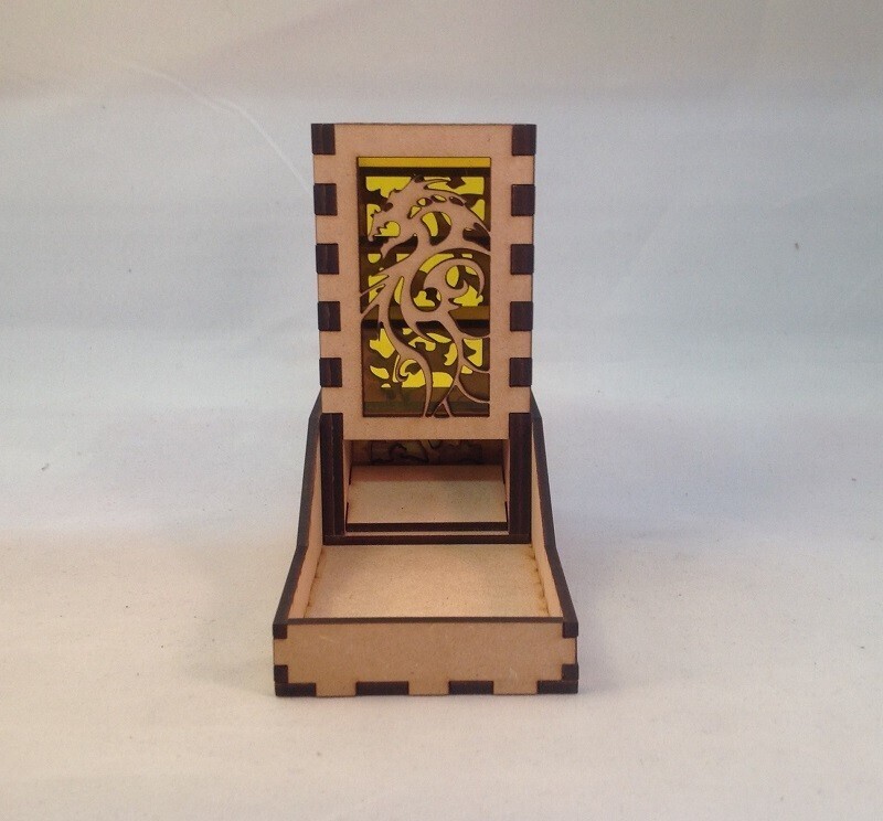 Dragon v6 Dice Tower and Tray Yellow Acrylic Window COMPACT DESIGN Laser Cut MDF