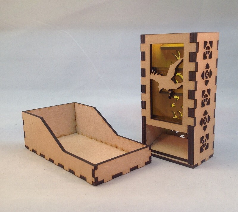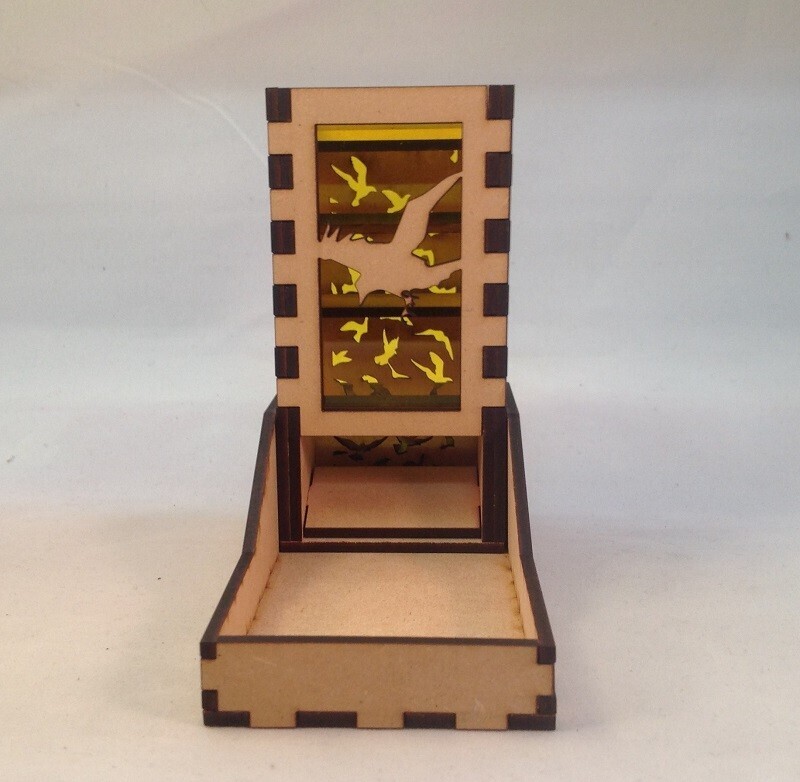 Raven Dice Tower and Tray Yellow Acrylic Window COMPACT DESIGN Laser Cut MDF
