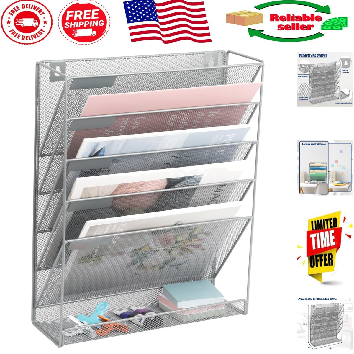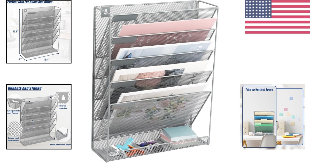 Sophisticated Gray 6-Tier Wall Organizer for Papers and Magazines, Easy Access